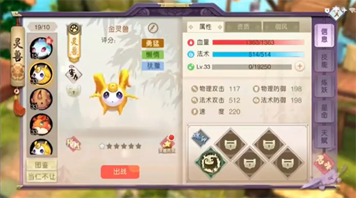 4、玩家在游戏中主要需要培养不同的灵兽进行战斗,灵兽拥有各自的属性以及评分,需要合理挑选养成