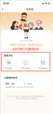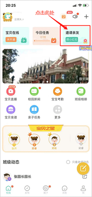 1、进入掌心宝贝校园界面,点击【邀请亲友】。