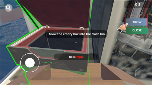 6、将商品全部上架完毕后,可以将纸箱丢入店门口的垃圾桶,点击trow即可将不需要的垃圾进行处理;
