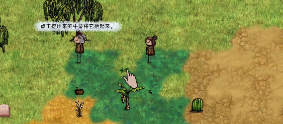 食物搜集:刚进入游戏时,你需要靠搜集食物过活。可以食用的野生植物包括粟粒、洋葱、仙人掌果实、香蕉、牛蒡、胡萝卜等。每种食物会加不同的饥饿度,尽量节约粮食。