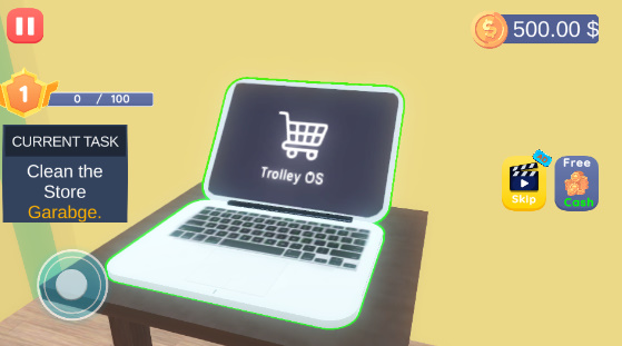 3、清理店铺内的垃圾,需要从第一人称视角完成进货、上架、售卖等操作,感受真实的交易玩法。