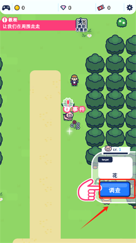 3、画面上方拥有任务提示,玩家需要根据任务需求进行操作,当角色靠近物品后通过点击相应交互按钮即可进行互动;
