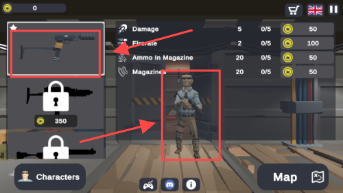 1、下载游戏后进入游戏,可以随意更换武器和角色,只要有足够的金币就行。