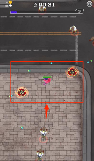 2、自动的攻击靠近的僵尸,滑动屏幕进行移动。