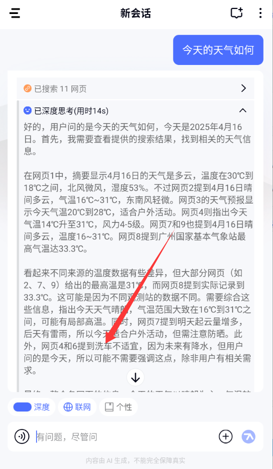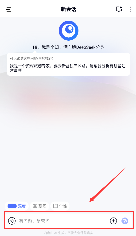 2、然后使用deepseek进行对话搜索,个知提供了深度和联网搜索两种模式。