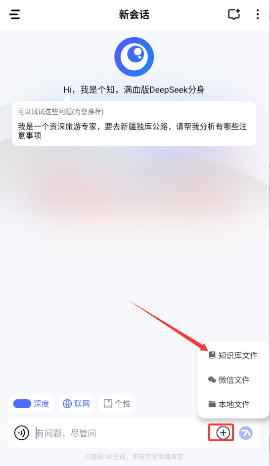 3、个知同时可以让用户导入手机本地文件,这些导入的文件生成你所需要的内容。