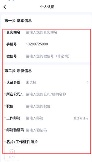 3、用户依次输入用户信息,上传工作证相片即可完成认证。