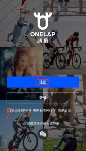 1、打开顽鹿运动APP,进入界面点击注册。