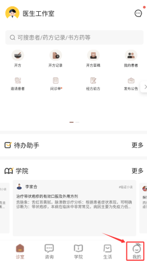 1、打开甘草医生APP,点击我的。