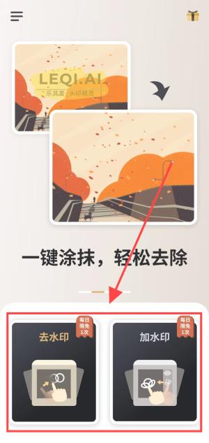 1、快速启动编辑流程,导入需要处理的图片后,选择去水印或加水印功能进入编辑界面。