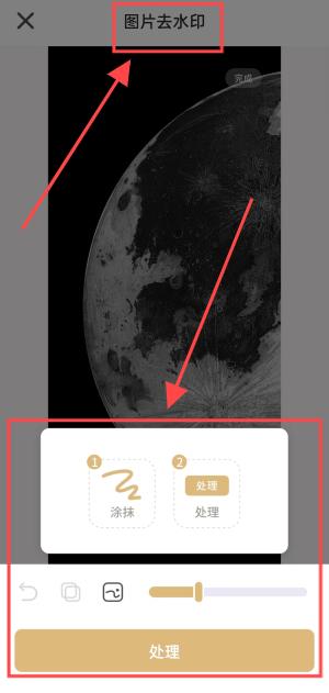 2、精准处理水印区域,使用涂抹工具选定水印范围,系统自动计算最佳处理方案完成修改。