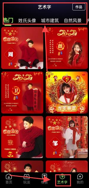 4、艺术字有姓氏头像、城市建筑等艺术字。