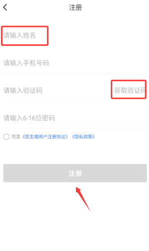 2、填写姓名,手机号码获取验证码后,设置密码即可注册成功。