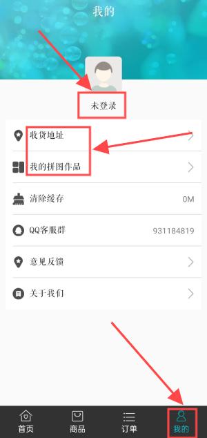 3、我的页面可以登录享受更多功能,也可以添加收货地址查看我的拼图作品等。