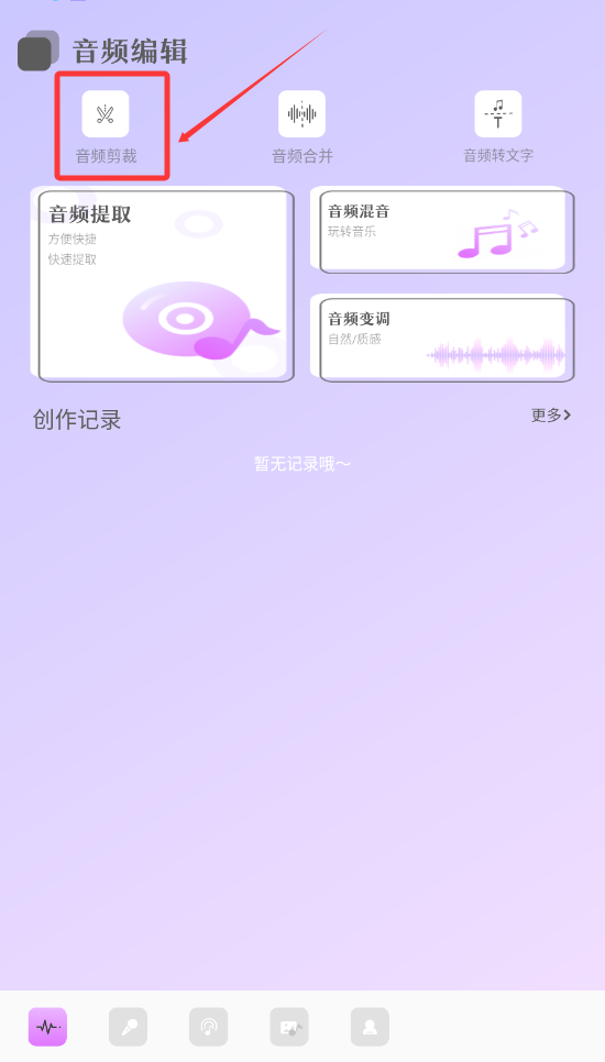 2、在音频编辑界面可以进行音频剪裁、合并、转文字等操作。