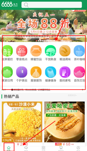 3、在首页中可以查看到生鲜蛋奶、零食糕点等服务。