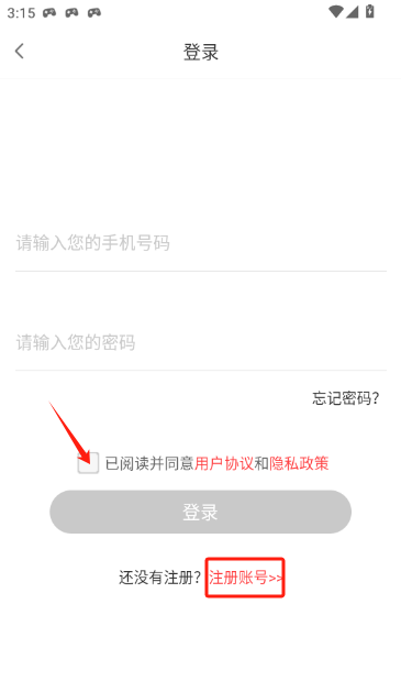 2、进入后勾选同意协议和和隐私设置,点击注册账号。