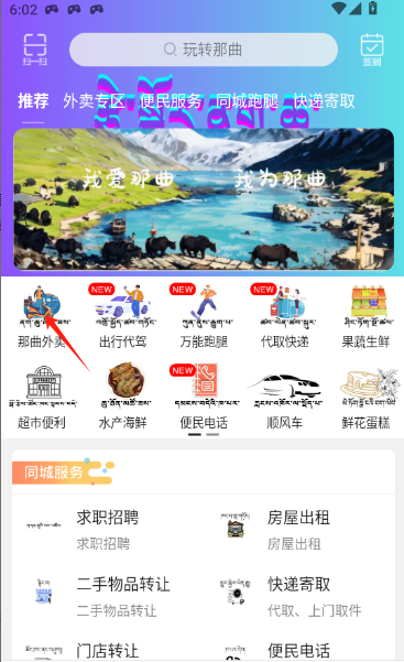 1、点击那曲外卖。