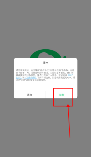 1、打开车车安app,点击“同意”。