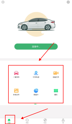 3、在设备页面中可以查看到一键寻车、行车轨迹等服务。