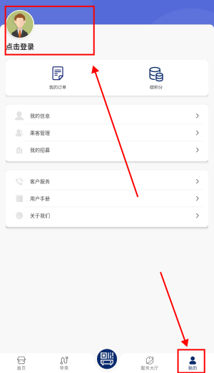 2、在我的页面中点击头像进行登录。