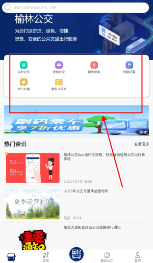 3、在首页可以查看到实时公交、定制公交等服务。