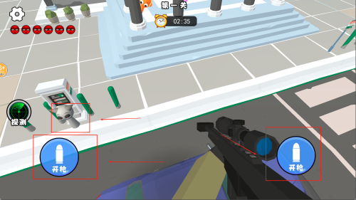 3、进入地图后通过滑动屏幕,瞄准音乐人,点击开枪,达成关卡要求后即可通关。
