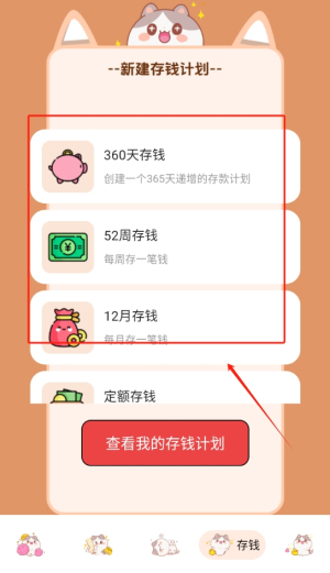 2、选择分类制定存钱计划。