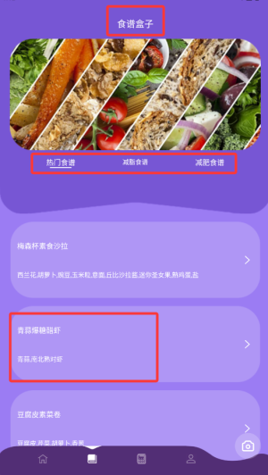 4、食谱学习:根据当前营养缺口,在推荐食谱中选择合适的餐食方案。