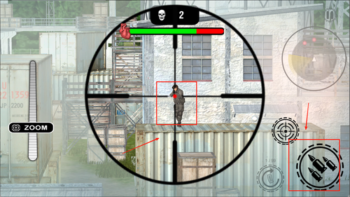 2、左边是放大倍率,右边是开火及换弹,上方是需要击败的敌人数量。