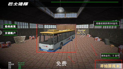 1、开始游戏,游戏提供了多种地图和大巴车,选择想驾驶的大巴车,然后进入游戏地图。