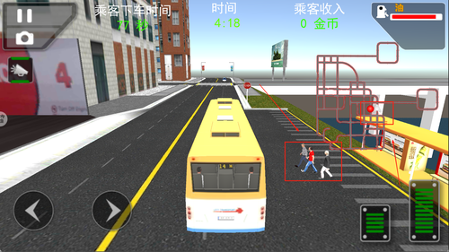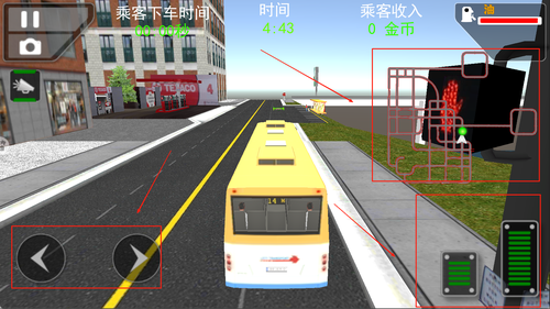 2、左边是方向键,右边是油门刹车和地图,右上角则是玩家大巴车的油量。
