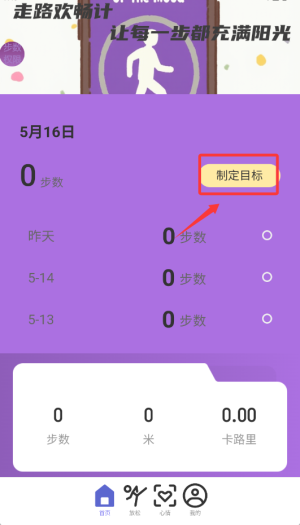 1、启动应用后,在首页点击"制定目标"功能进入计划设置页面。
