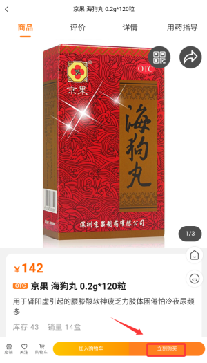 3、选择目标药品后,点击"立即购买"完成在线下单流程。