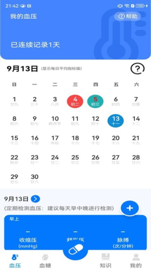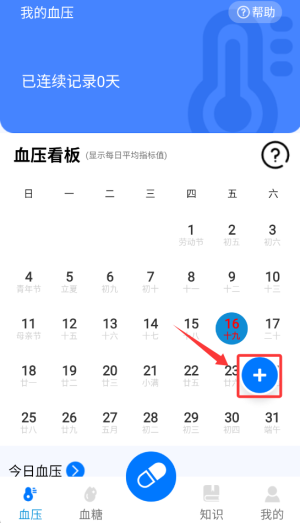 1、启动应用后,在首页点击"新增记录"图标进入血压录入页面。
