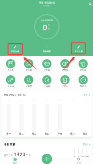 1、启动应用后,在首页选择"开始体重"功能进入数据设置页面。