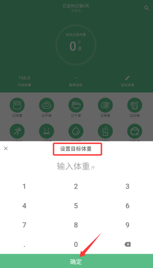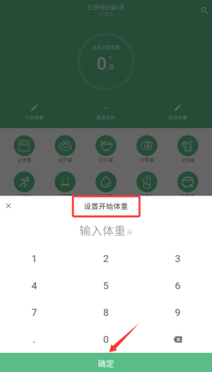 2、填写当前实际体重数值,建立健康档案基准数据。