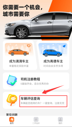1、登录快车司机助手APP后,在功能页面选择"车辆估价"服务进入查询界面。