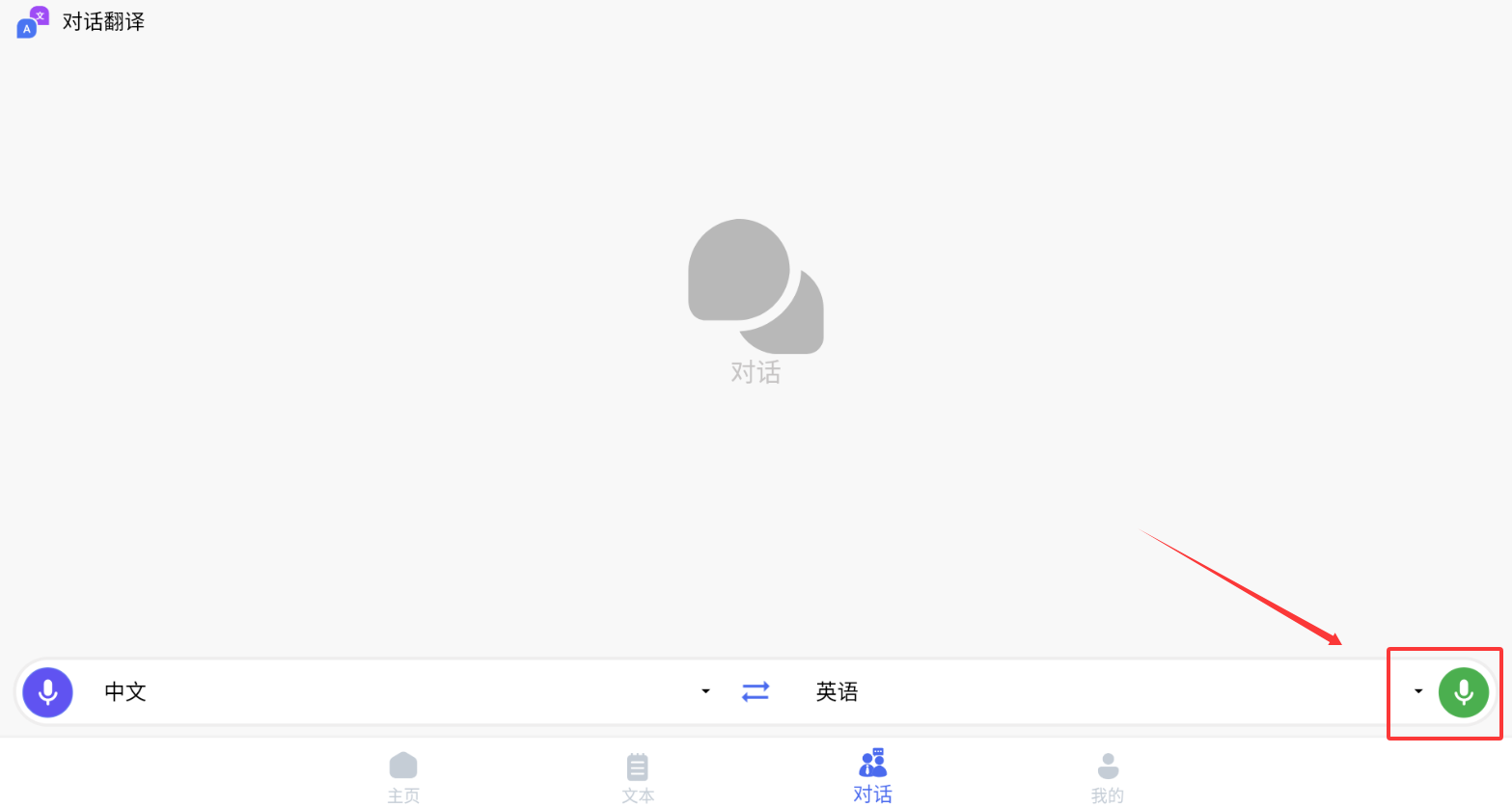 3、点击界面麦克风图标开始说话,系统会自动识别语音并实时翻译播放目标语言内容。