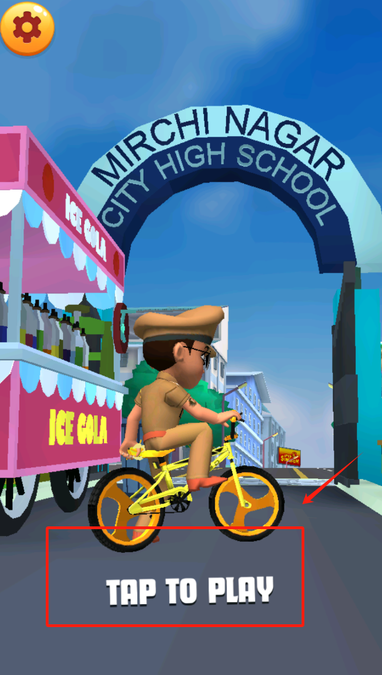 3、点击底部红色TAP TO PLAY按钮,开始在米奇纳加尔学校背景的游戏中骑行。