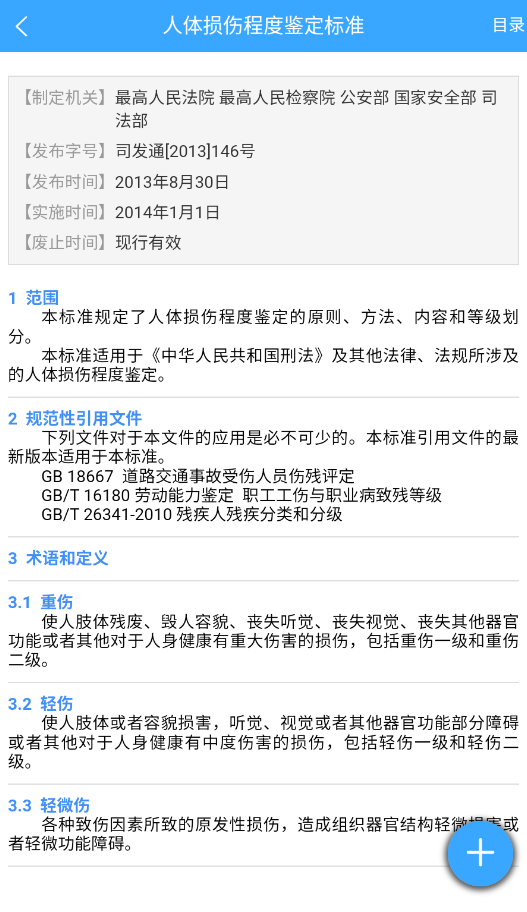 2、系统会分类展示各类伤情鉴定规范,包括轻重伤分级等专业评估依据。