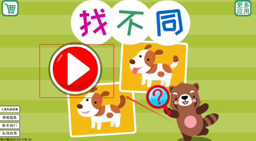 3、小朋友只需要观察两张相似的图片,用手指点击其中的不同之处即可得分。