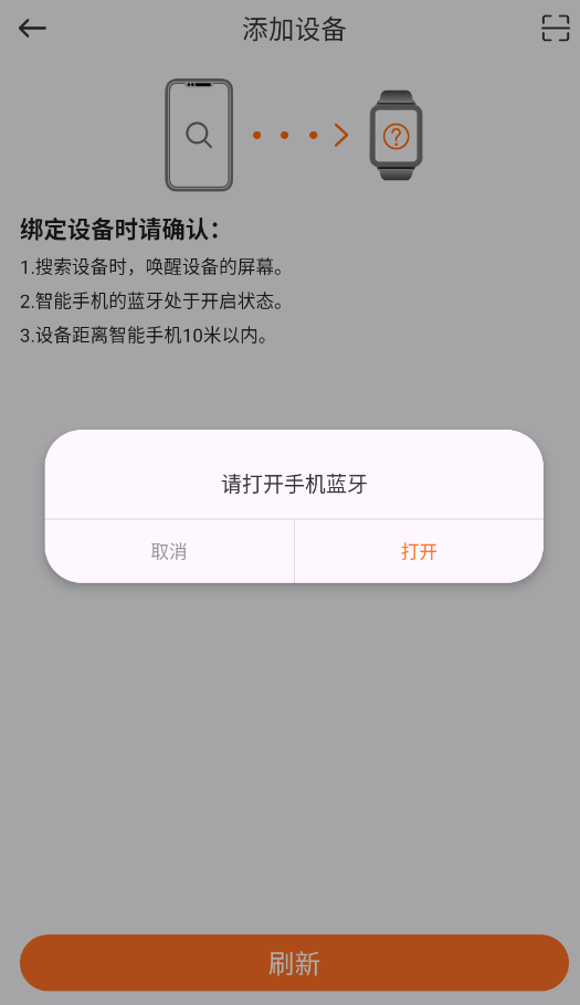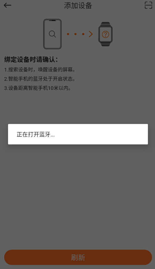 2、在设备添加页面,开启智能手机的蓝牙功能确保可被检测状态。