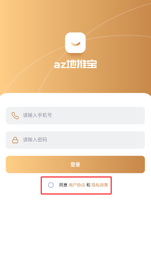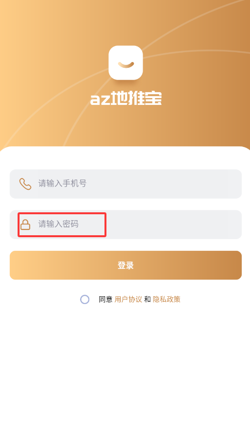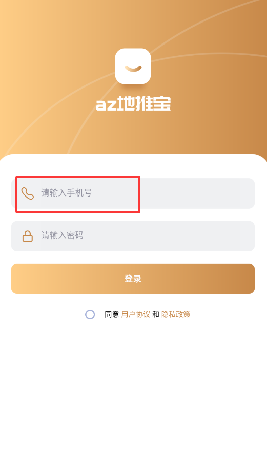 1、启动az地推宝APP后,在登录界面输入注册时绑定的手机号码。