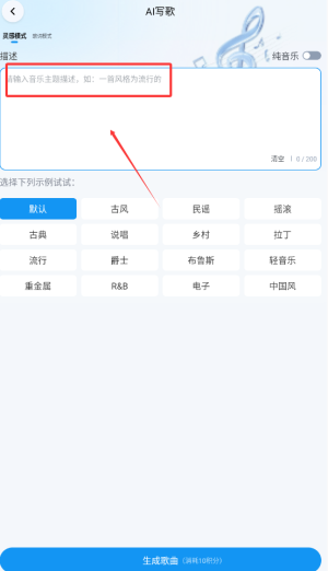 1、关键词联想创作引擎支持中英文混合输入,系统会解析语义自动匹配最适合的乐器组合。