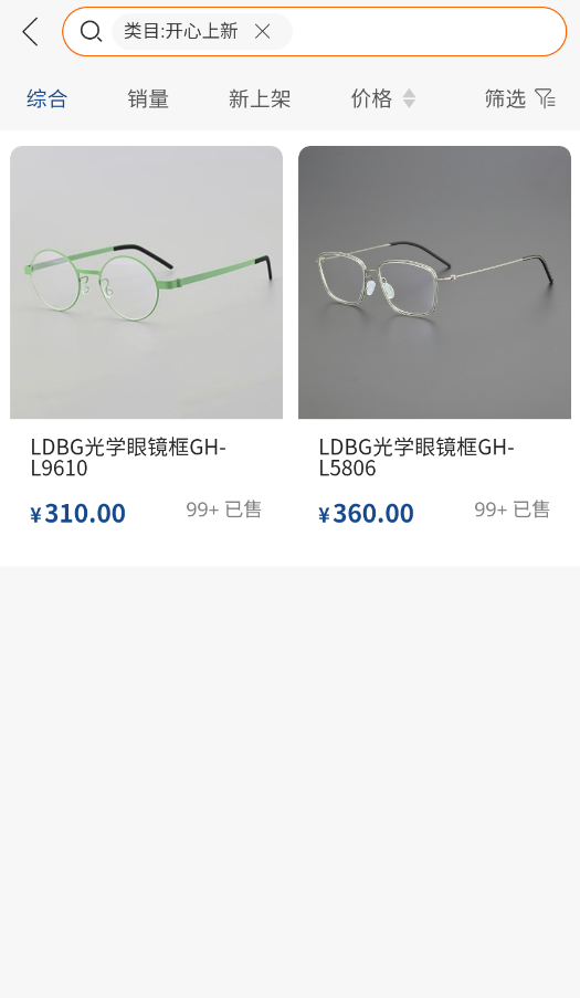 2、在所选眼镜分类中,根据个人偏好仔细挑选喜欢的眼镜款式。