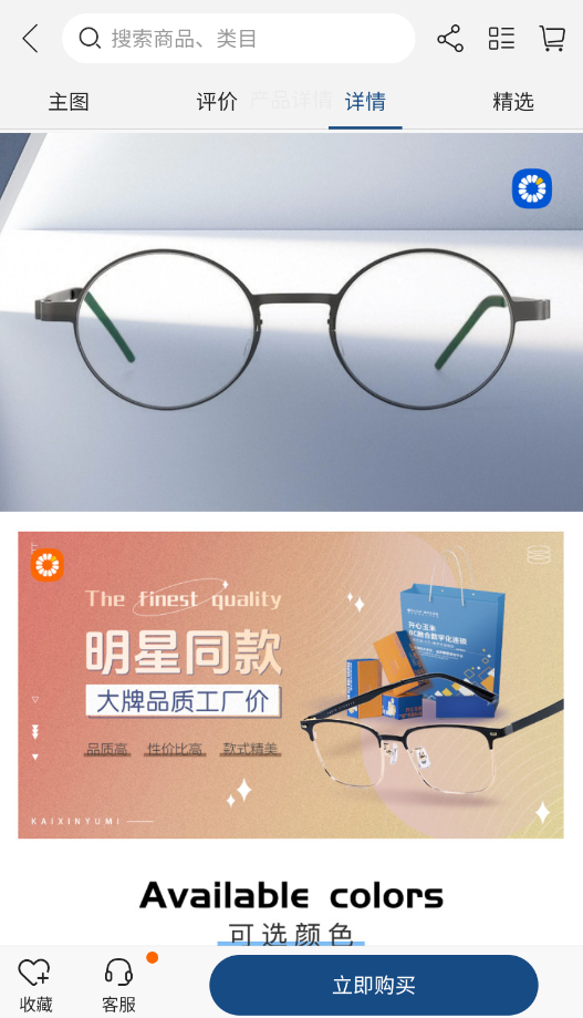 3、点击进入眼镜详情页面,全面了解后,便捷地完成购买流程。
