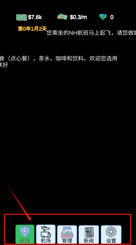 2、点击航线按钮,查看航班信息,准备起飞NH航班。