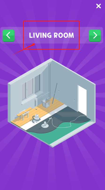 3、点左右箭头切换房间,客厅有吸尘器和木地板,可以打扫或布置。
