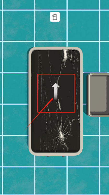 2、点击屏幕中间红框里的向上箭头,开始修理这个碎屏手机。